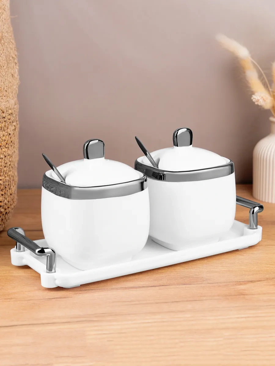 Homelabshop Seramik Kapaklı Ve Kaşıklı Şekerlik, 2 Adet 275451622 Beyaz