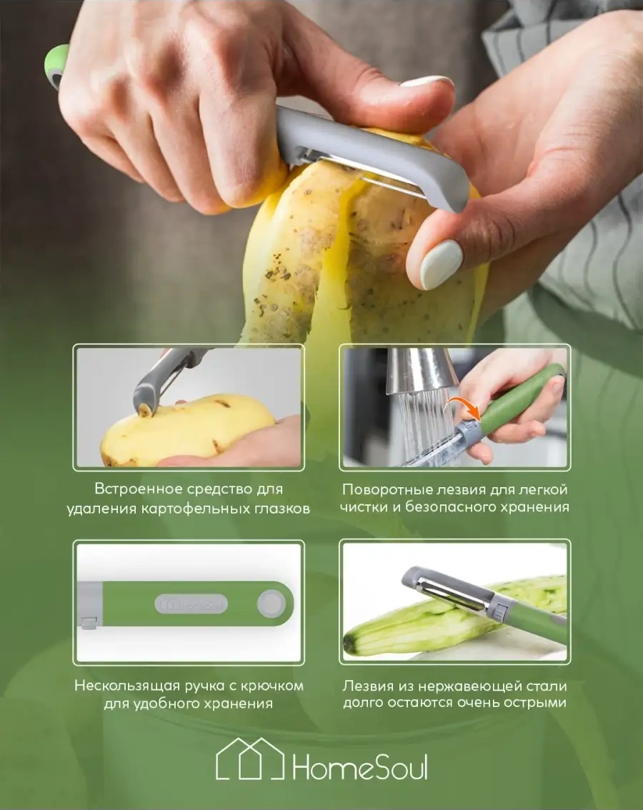 Homesoul Keskin Ve Rahat Sebze Soyucu, Patates Soyacağı, Sebzeler İçin Soyacak Doğrayıcı 38663671 Yeşil