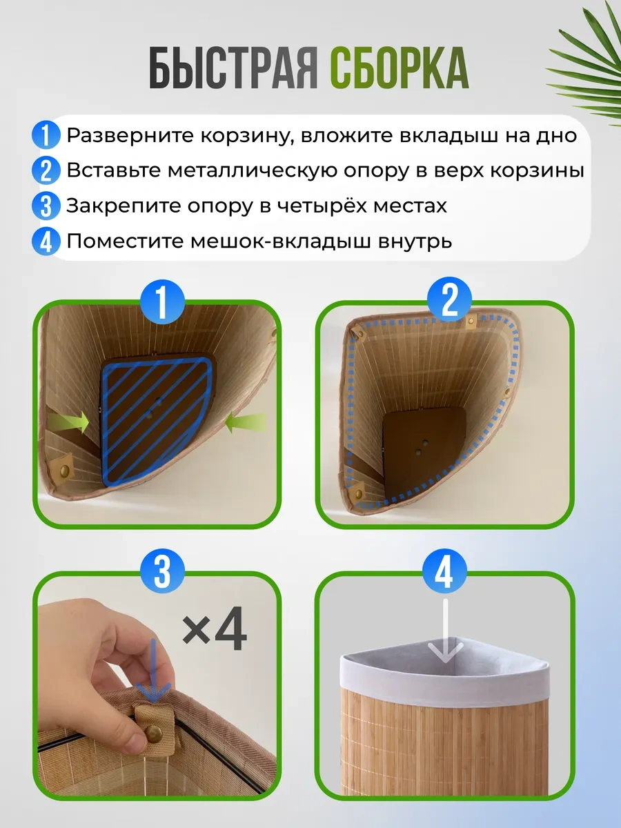 Homium Bambu Köşe Çamaşır Sepeti 60 Lt 124221466 Bej