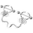 Homyl 1 Çift Akrep Şekli Düz Kristal Meme Halkası 16g Gümüş
