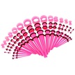 Homyl 50 Adet 14g-00g O-ring Akrilik Konik Fişler Ve Silikon Pembe