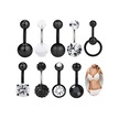 Homyl 9 Adet Göbek Halkası Dangle Elmas Takılar Kadınlar Siyah