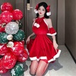 Homyl Cosplay Parti Rol Oynamak Için Yılbaşı Baba Mini Elbise Kırmızı