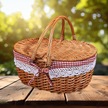 Homyl Piknik Sepeti Kırsal Pratik Hasır Depolama Park Açık Kırmızı Kareli