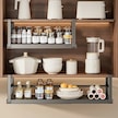 Honeybeeshop 1 Adet Siyah Büyük Ayarlanabilir Metal Dolap Rafı Baharat Şişeleri Ve Soslar İçin Genişletilebilir Mutfak Depolama Rafı