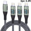 Honeybeeshop 3 Adet Yeşil Aıcase İphone Şarj Kablosu İçin Led Ekran 3 Metre 10 Fit Uzun Örgülü Kablo İphone 14 13 12 11 X Xs Xr Xs Max Uyumlu