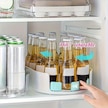 Honeybeeshop Bej Şeffaf Plastik Mutfak Depolama Tepsisı 360 Dönen Ayrılabilir Çok Bölmeli Raf Bej