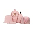 Honeybeeshop Pembe 5 Parça Katı Renk Sırt Çantası Seti Okul Kolej Yolcu Çantası