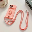 Honeybeeshop Pembe Renk İphone Uyumlu 11 Pro Max Katı Makaron Boyun Askılı Tam Kapak Yumuşak Telefon Kılıf
