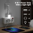 Honeybeeshop Siyah 8li Set Ab Güç Panosu 3 Renk Ayarlanabilir Gece Lambası 3 Ac Soket 3 Usb 2 Tip-c Duvar Şarj İstasyonu Ev Ofis Seyahat İçin