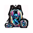 Honeybeeshop Stitch Ve Elmas Çiçekli 3 Adet Sırt Çantası Seti Gençler İçin Büyük Kapasiteli O