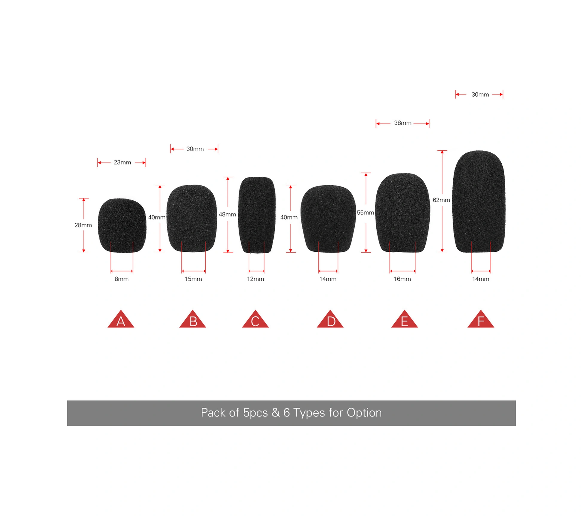 Honmex Siyah Mini Mikrofon Köpük Koruması A Tipi 28mm Yükseklik, 23mm Dış Çap, 8mm İç Çap 5 Adet - Ses Gürültüsünü Azaltır