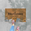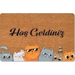 Hoş Geldiniz Yazılır Temalı Kedili Dekoratif Dış Kapı Önü Ve Iç Mekan Paspası Yıkanabilir Toz Alıcı Bej