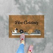 Hoş Geldiniz Yazılır Temalı Kedili Dekoratif Dış Kapı Önü Ve Iç Mekan Paspası Yıkanabilir Toz Alıcı Gold