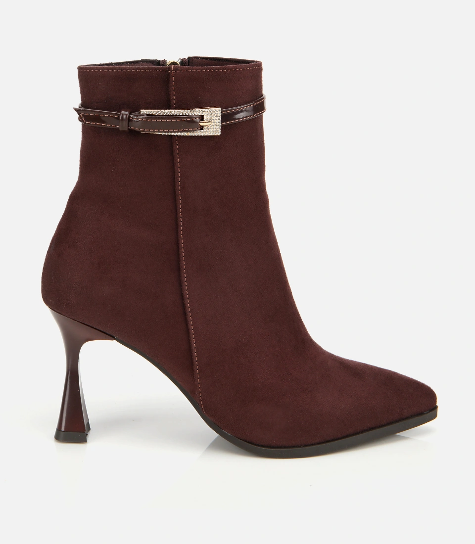 Hotiç Kadın Süet Kahverengi Taşlı Tokalı Bilekte Topuklu Bot 01boh314920a480 01boh314920a480 Kahverengi