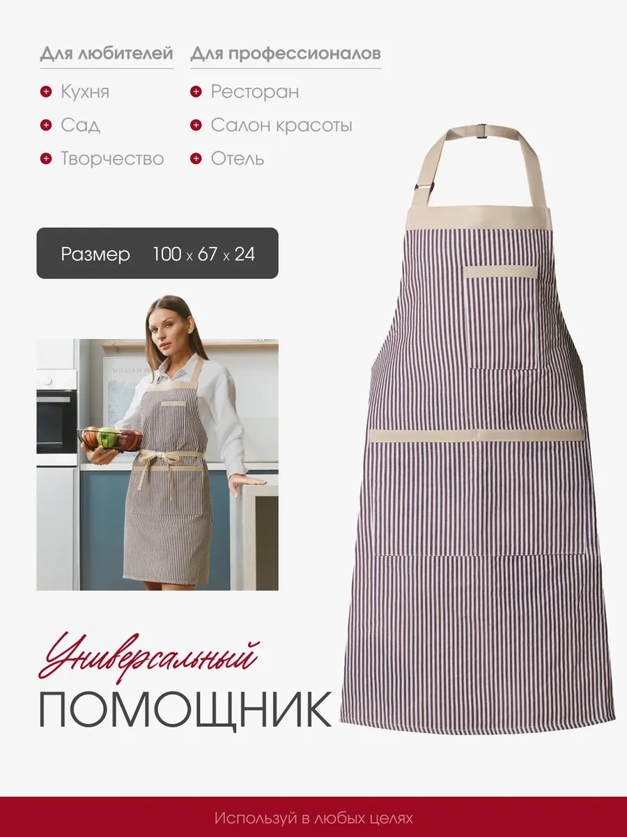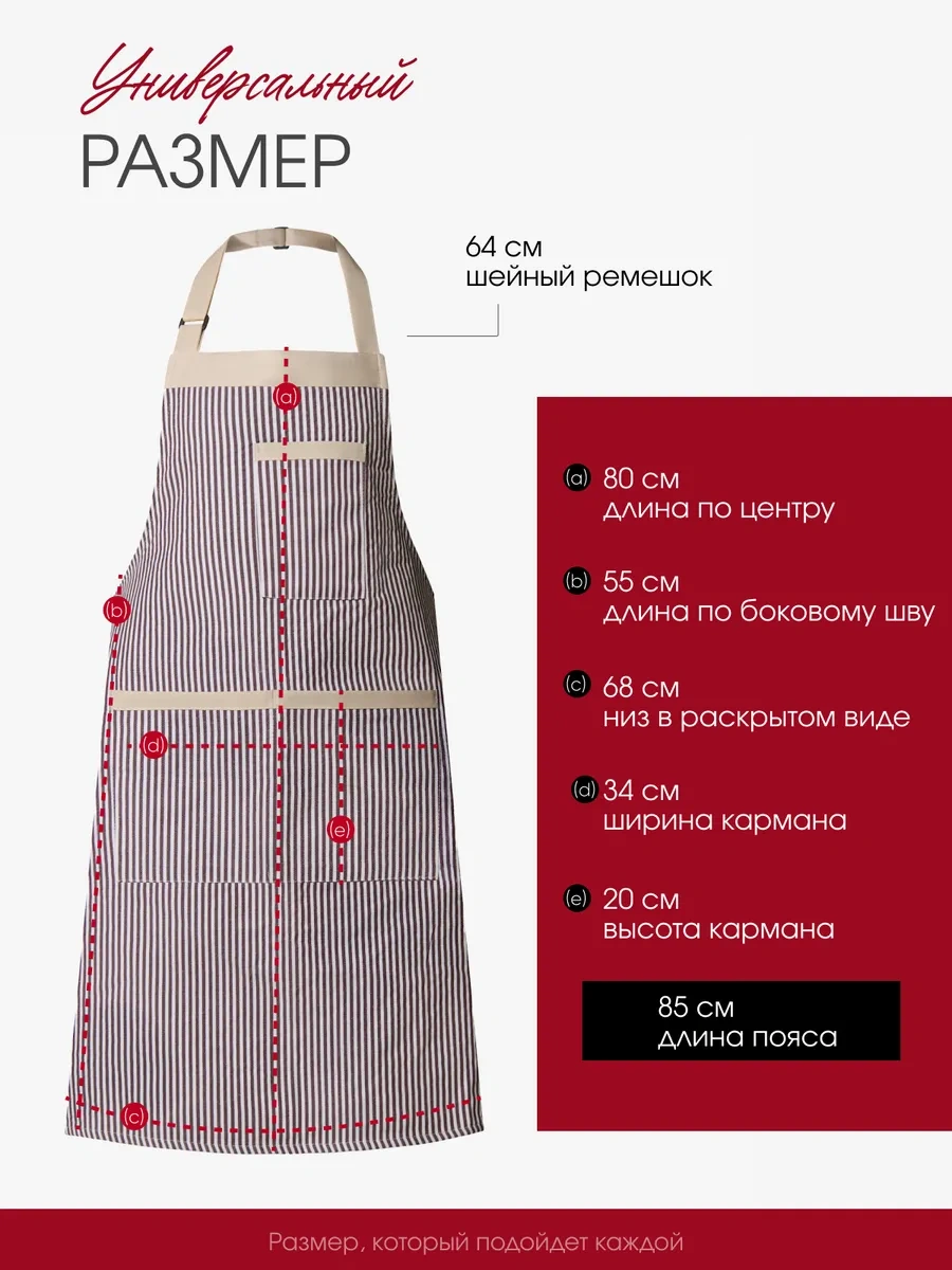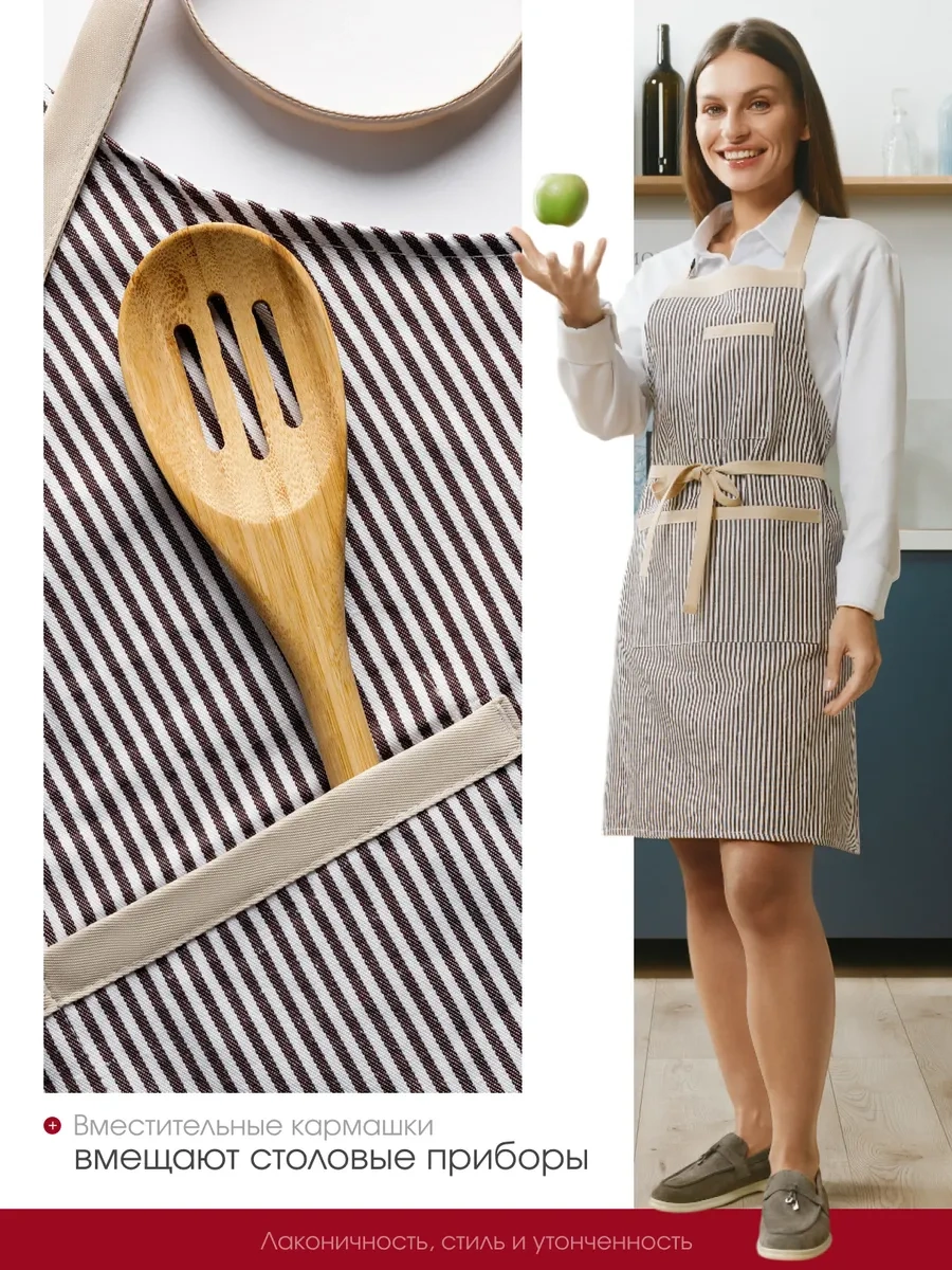Unisex Üç Cepli Önlük Siyah Beyaz Çizgili, Tek Beden Diğer