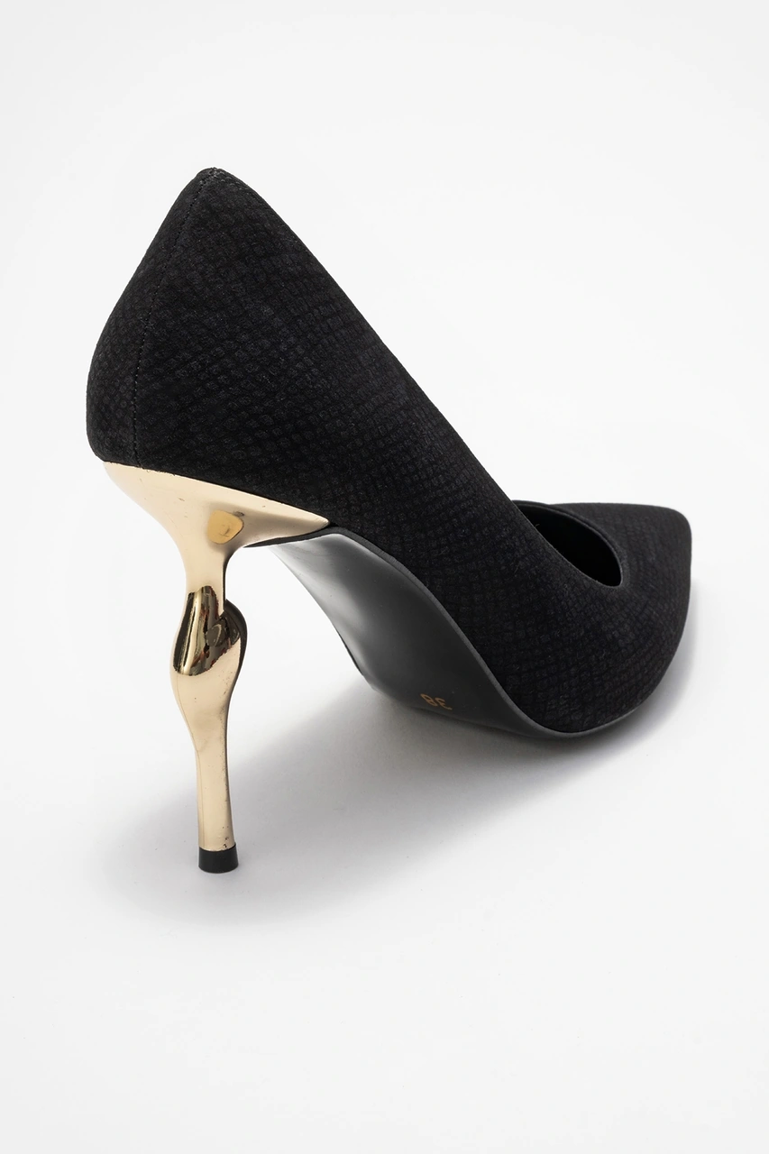 Hudson Siyah Desenli Kadın Topuklu Ayakkabı Siyah