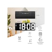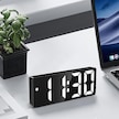 siyah plastik malzemeden, gosterge ekrani aynali, 3 kademe aydinlatma, istenirse saat.takvim ve derece sirayla ekrana geliyor, aksam ayarladiginiz saat ile ayarladiginiz saat arasinda gece moduna girip kisik isikta calisiyor. alarm ozelligi var. 3 kalem pil ile calisiyor ayrica 5v ile de calisabiliyor. sadece kalem pille calisirsa bir sure sonra ekrani kapatiyor ses ile aciyor. masa ustu icin uygun. duvara takma aparati vs yok. fiyat performans gayet iyi.