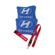 Hyundai Nakışlı Mavi Polar Ortopedik Seyahat Araç Boyun Yastığı / Oto Ayna Askısı & Tampon Çeki İpi Mavi