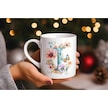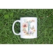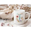 I Harfi Çiçekli Kupa Bardak - Soft Renk Çiçek Ve Kelebek Desenli Zarif Kahve Kupası - Bohem Beyaz