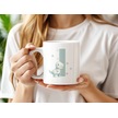 I Harfi Sevimli Dinozor Kupa Bardak - Açık Yeşil Yıldız Detaylı Dino Tasarım - Hediye Beyaz