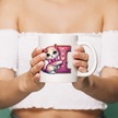 I Harfli Bardak, Sevimli Kedili Pembe Tasarım Bardak, Arkadaşa Aileye Hediye Porselen Beyaz