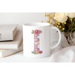I Harfli Retro Çiçekli Kupa Bardak - Patchwork Tarz Yamalı Desenli İsme Özel Kupa - Hediye 07 Beyaz