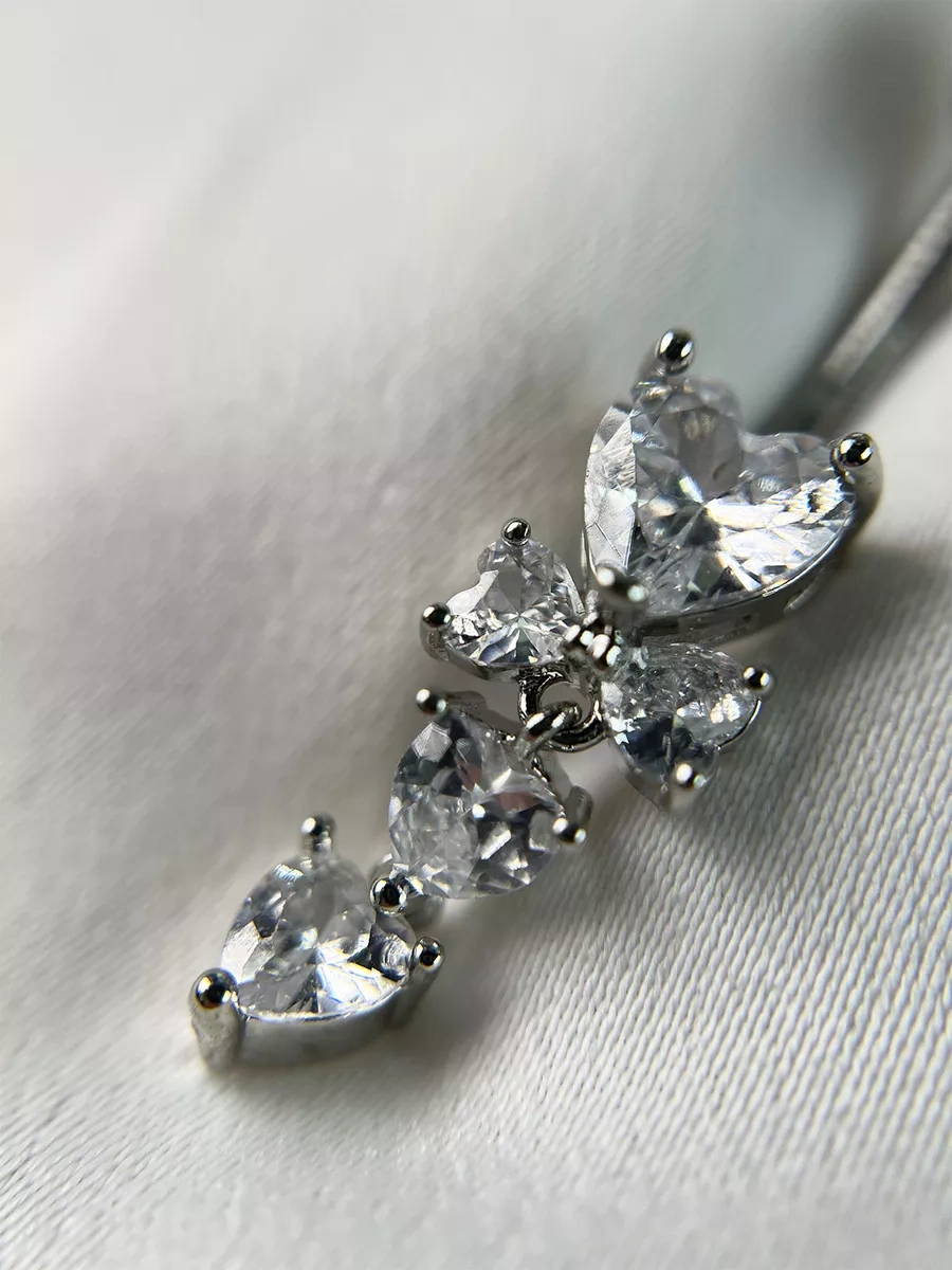 316l Çelik Gümüş Renk Zirkon Taşlı Kelebek Model Sallantı Detay Tragus Piercing Gümüş