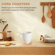 İçecekler İçin 20 Paket Mantar Bardak Altlığı, Emici Isıya Dayanıklı Tekrar Kullanılabilir Ahşap