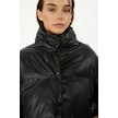 İçi Astarlı Su Ve Rüzgar Geçirmez Cepli Dik Yaka Kadın Mont Parlak Siyah