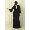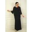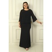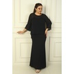 İçi İp Askılı Astarlı Uzun Sandy Elbise Arkası Düğmeli Boncuklu Şifon Bluz Büyük Beden 2'li Takım Siyah