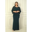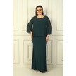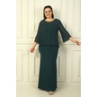 İçi İp Askılı Astarlı Uzun Sandy Elbise Arkası Düğmeli Boncuklu Şifon Bluz Büyük Beden 2'li Takım Zümrüt