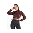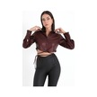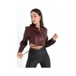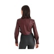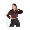 İçi Kadife Bağcıklı Kadın Kısa Deri Gömlek - Bordo-bordo Bordo