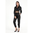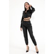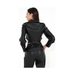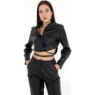 İçi Kadife Bağcıklı Kadın Kısa Deri Gömlek - Siyah-siyah Siyah