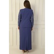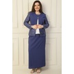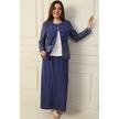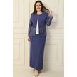 İçi Yarım Ay Kol Bluz Pul Nakışişlemeboncuk Detaylı Ceket Etek Astarlı Büyük Beden 3'lü Takım İndigo