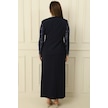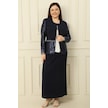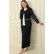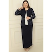 İçi Yarım Ay Kol Bluz Pul Nakışişlemeboncuk Detaylı Ceket Etek Astarlı Büyük Beden 3'lü Takım Lacivert