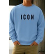 Icon Baskılı Bisiklet Yaka Sweatshirt Bebe Mavisi