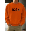 Icon Baskılı Bisiklet Yaka Sweatshirt Turuncu