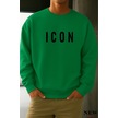 Icon Baskılı Bisiklet Yaka Sweatshirt Yeşil
