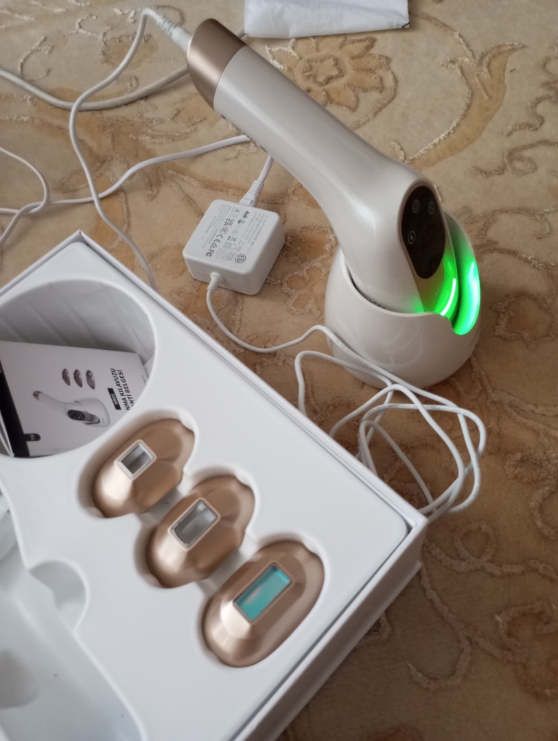 ürünü yorumlara bakarak aldım. gerçekten çok kaliteli görünümü var. bana gelen makine 5 kademeli. 1.de 1, 2 de 2 ,3,4ve5 te 3 saniyede atım yapıyor. başlıksız çok rahat buz özelliği sayesinde yakmıyor ama başlık takınca 5 te yanık oluştu ama acımıyor sadece iz oluyor. atım yapılan bölgede kıl tüy varsa acıtıyor yoksa çok acısız 5 te kullanılıyor. ben epilasyon ile alıp 4 gün sonra başladım. jilet yada makineyle aynı gün atım yapılabilir. biz 4 kişi kullancağız. etkisi olunca tekrar yazarım