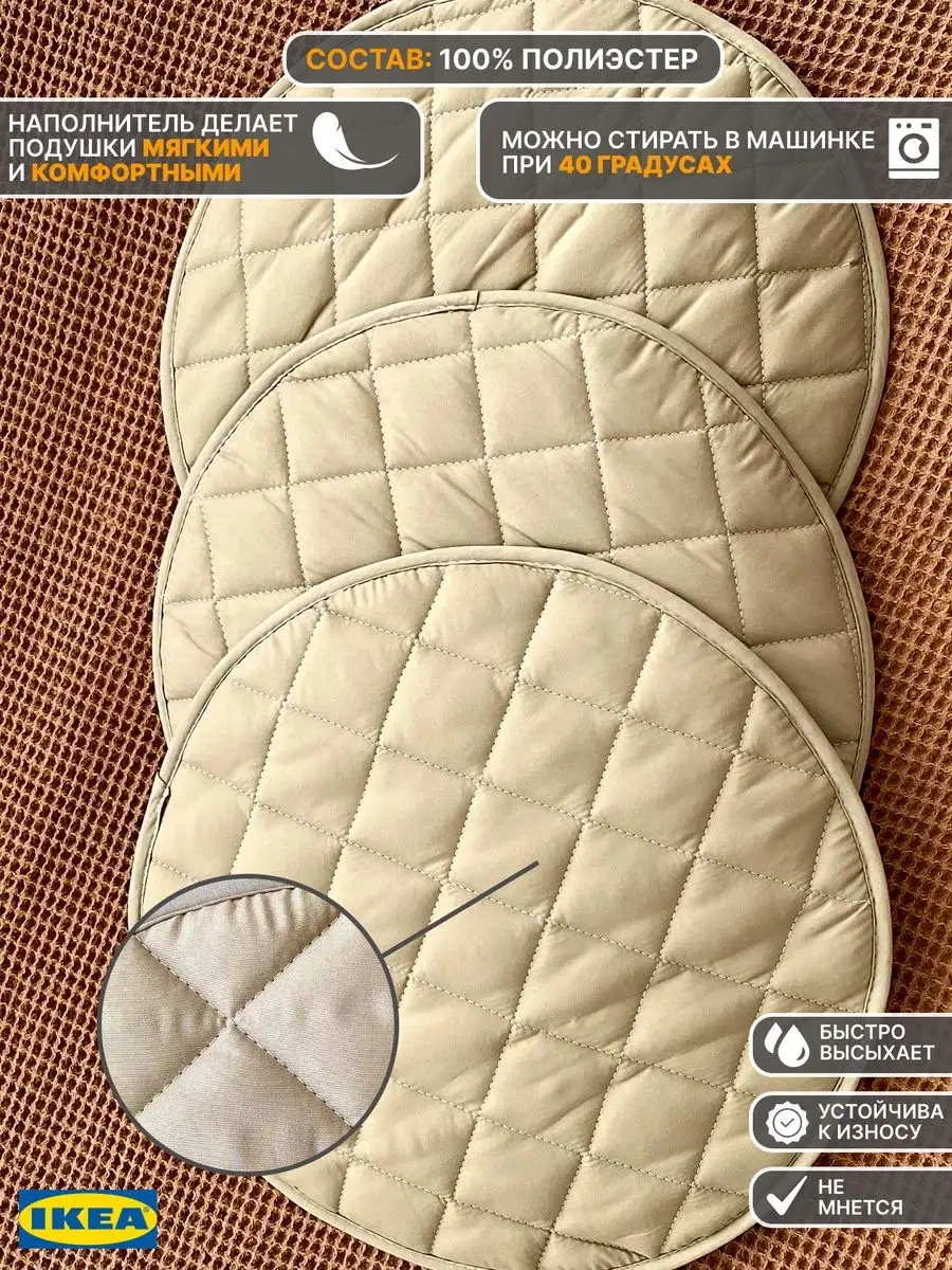 Ikea Direkli Yuvarlak Cırt Cırtlı Sandalye Yastığı 150258588 Bej
