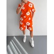 İki İplik Kumaş Baskılı T-shirt Şortlu Takım- Turuncu Turuncu