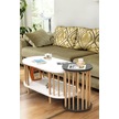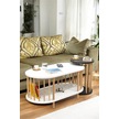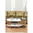 İkili Set Orta Sehpa Ahşap Ayaklı Sehpa İki Raflı Sehpa Dekoratif Sehpa Gazetelikli Beyaz - Antrasit
