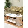 İkili Set Orta Sehpa Ahşap Ayaklı Sehpa İki Raflı Sehpa Dekoratif Sehpa Gazetelikli Beyaz - Beyaz