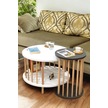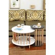 İkili Set Yuvarlak Orta Sehpa Ahşap Ayaklı Sehpa Iki Raflı Sehpa Dekoratif Sehpa Gazetelikli Beyaz - Antrasit