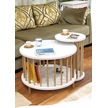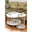 İkili Set Yuvarlak Orta Sehpa Ahşap Ayaklı Sehpa Iki Raflı Sehpa Dekoratif Sehpa Gazetelikli Beyaz - Beyaz