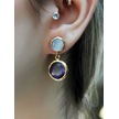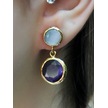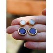 İkili Yuvarlak Modelli Kedigözü Cam Gold Kaplamalı Kadın Küpe Euku25bl Lacivert