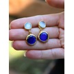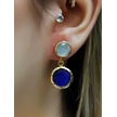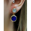 İkili Yuvarlak Modelli Kedigözü Cam Gold Kaplamalı Kadın Küpe Euku25bm Mavi