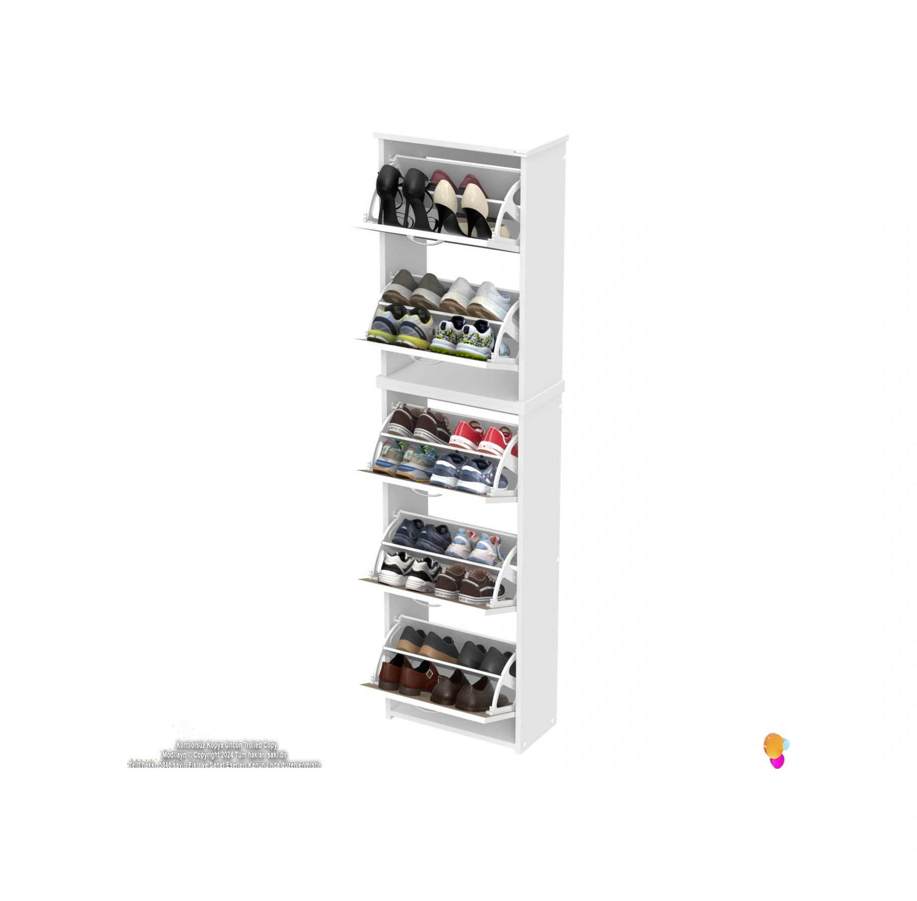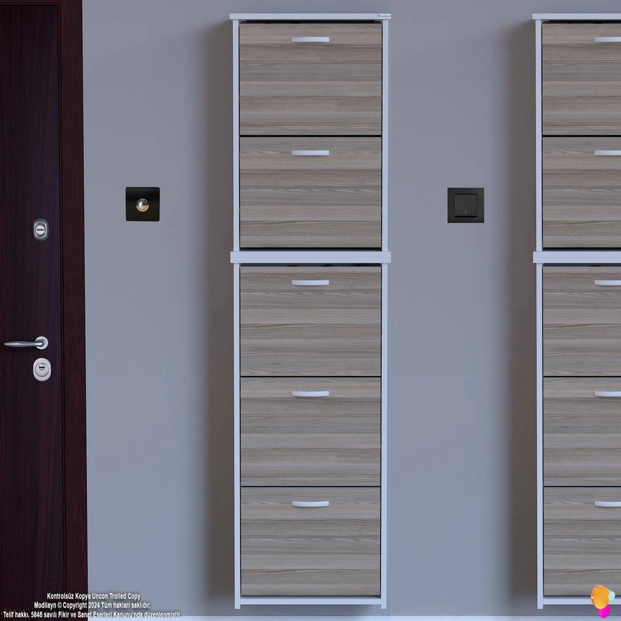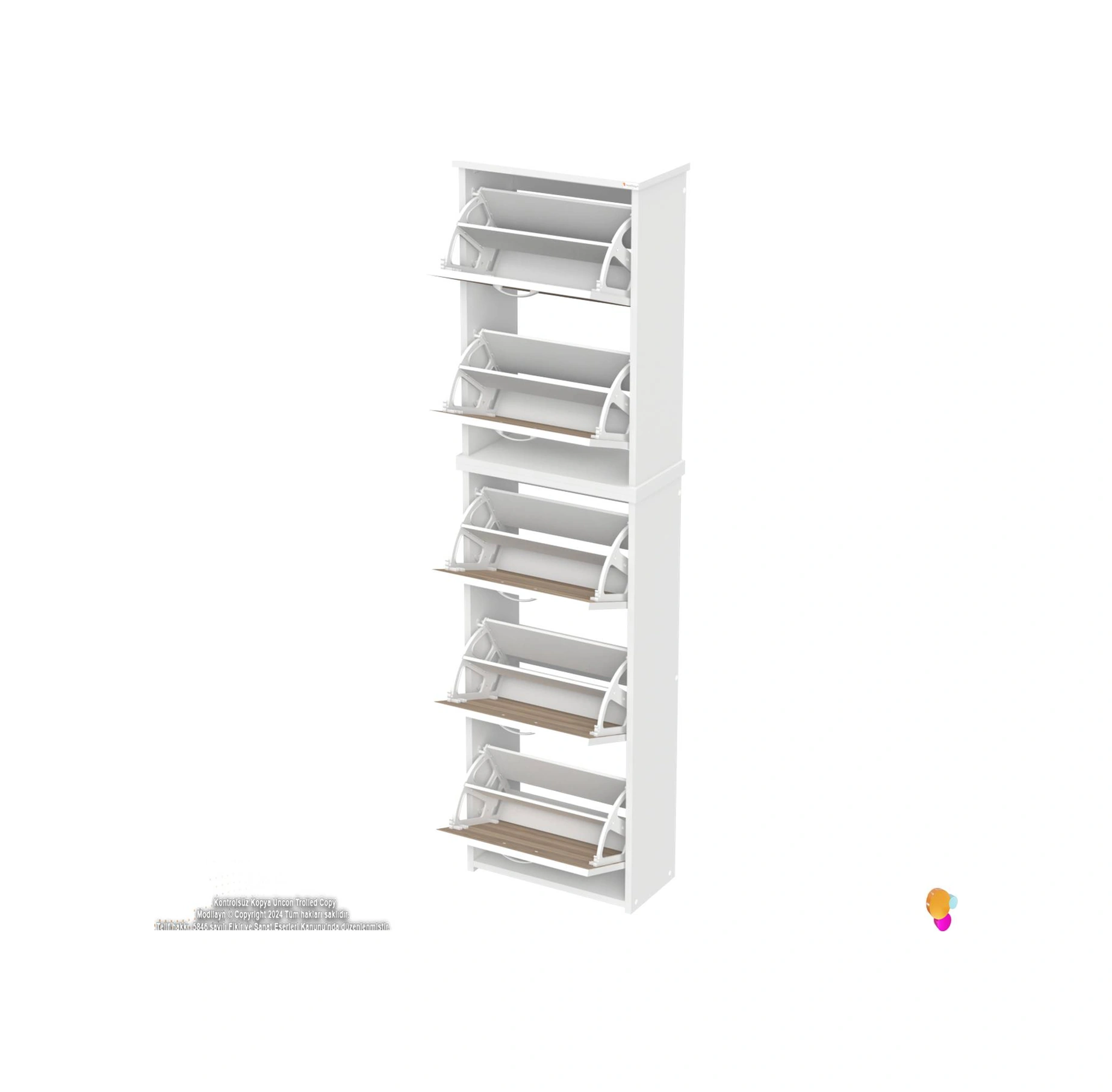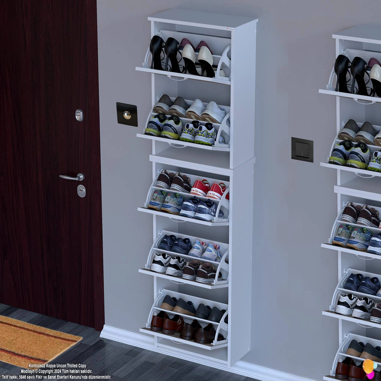 İkra Meşe Renk Asma Ayakkabılık 52cm Kapı Önü 5 Düşer Kapak 10 Bölmeli Ayakkabılık 52x194x26 Cm Meşe