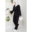 Tesettür İkili Takım Uzun Tunik Bol Paça Pantolon 4006-siyah Siyah